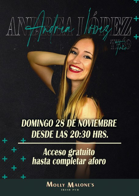 El Molly Malone (c/ La Paloma) acoge este domingo 28 de noviembre a Andrea López Trío. La cantante leonesa se sube al escenario junto a John Bramley y Javier Baíllo para interpretar clásicos del jazz y el soul. El concierto comenzará a las 20:30 horas. Entrada libre hasta completar el aforo.