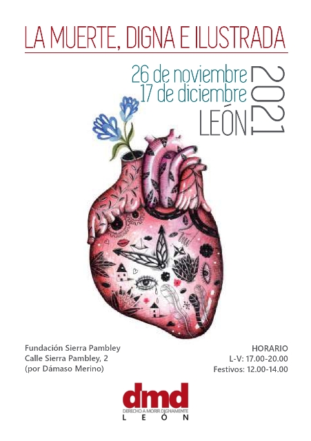 Desde este viernes 26 de noviembre y hasta el 17 de diciembre podrá verse en la Fundación Sierra Pambley la exposición itinerante ‘La muerte, digna e ilustrada’, que organiza la asociación Derecho a Morir Dignamente (DMD), con la colaboración del Ayuntamiento de León. Reúne una treintena de ilustraciones de jóvenes artistas para conversar sobre la muerte digna y se complementa con una conferencia, una proyección de cortos, una velada literaria, una charla-coloquio y la presentación de un libro.