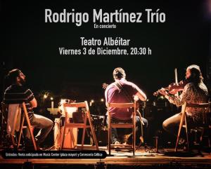 Este viernes 3 de diciembre, a las 20:30 horas, el teatro El Albéitar (León) acogerá el concierto de presentación de Rodrigo Martínez Trío, un proyecto en el que participan también, además del multi-instrumentista leonés que da nombre al grupo, el violinista Jaime del Blanco y el acordeonista Sergio Rodríguez.