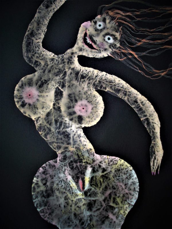 Las fotografías, positivadas en gelatina de plata sobre papel baritado no plastificado, técnicamente son rayogramas, método inventado por el genial Man Ray en 1922. Esto es: no hay negativo que llevar a la ampliadora. Las danzarinas y el resto de personajes que pululan por la novela fueron compuestos a partir de mi propia costilla más un pedazo de celofán que se sitúa encima del papel sensible. Unas pocas, procesadas en mate, las he iluminado con lápices de colores.