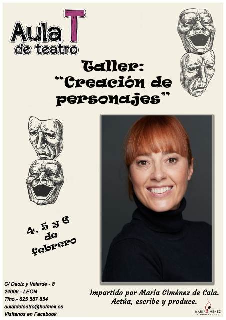 María Giménez de Cala actúa, escribe y produce. Pero en esta ocasión la actriz leonesa cambia el escenario por las aulas para impartir los días 4, 5 y 6 de febrero, un taller para que los alumnos aprendan a crear personajes con las herramientas necesarias. El curso tendrá lugar en la Escuela de Teatro Aula T en León (C/ Daoiz y Velarde 8).