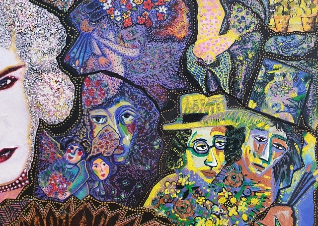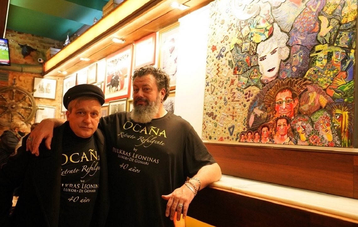 “Ocaña, retrato refulgente”, el collage que muestran, es su tercer trabajo como colectivo en el que conjugan sus dos formas de expresarse. “Nos preocupa mucho potenciar uno el trabajo del otro, que no quede desequilibrado más allá de la proporción artística. Luxor es abstracto y yo figurativo”, explica De Gonari.