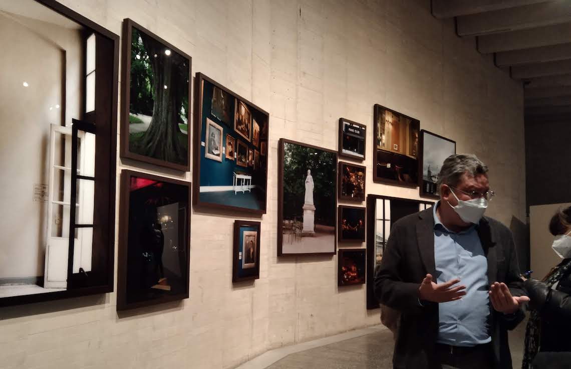 El nuevo director del MUSAC, Álvaro Rodríguez Fominaya, ayer, explicando algunos aspectos de las fotografías que conforman la instalación de Carmela García, en la exposición «Metanarrativas». Foto: E. O.