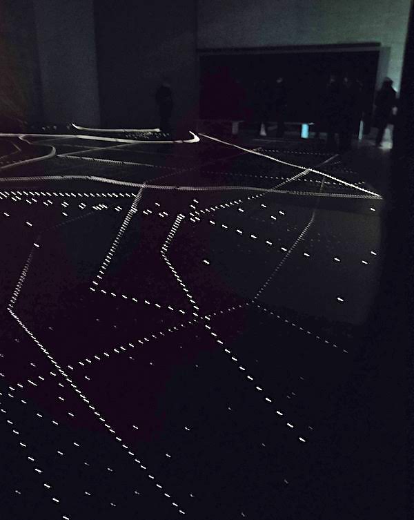 Carlos Garaicoa recrea un paisaje urgano nocturno visto desde el aire. Foto: E. O.