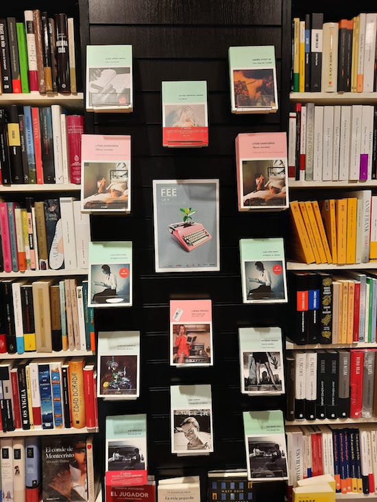 Foto librería Cervantes 31 de marzo de 2022 Return to: FEE / 1 abril / Nueve editoriales en los jardines de El Albéitar y un encuentro entre autoras (María Bastarós y Silvia Hidalgo)Máxima resolución (550 × 733) Image navigation Siguiente imagen Imagen de la librería Cervantes de Oviedo,que ha acogido a la editorial “Tres Hermanas”.
