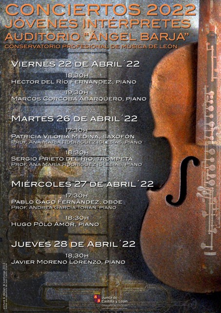 El Ciclo de Jóvenes Intérpretes 2022 del Conservatorio de Música de León contará en esta edición con seis conciertos en total, repartidos en tres jornadas en las que se celebraran dos sesiones cada día. Lo inaugura este viernes 22 de abril, a las 18,30 horas, Héctor del Río Fernández al piano, con obras de Bach, Beethoven, Chopin, Scarlatti y Albéniz.