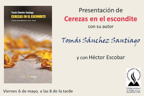 La Fundación Segundo y Santiago Montes, en Valladolid, acogerá este viernes 6 de mayo de 2022, a las 8 de la tarde, la presentación de «Cerezas en el escondite» (Menoslobos & Eolas, 2021), un libro en el que el profesor, escritor y poeta zamorano afincado en León Tomás Sánchez Santiago recoge sus artículos de largo aliento publicados en La sombra del ciprés, el suplemento de cultura de El Norte de Castilla. El autor estará acompañado en la presentación por el editor leonés Héctor Escobar.