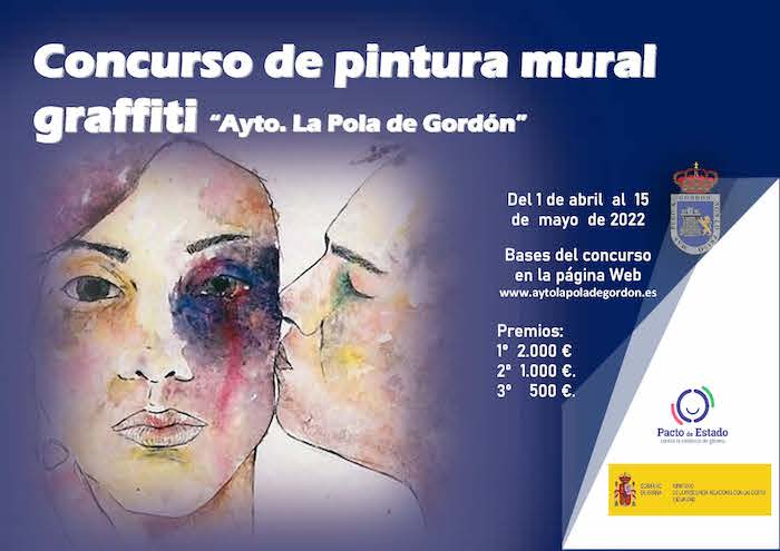 El Ayuntamiento de La Pola de Gordón (León) ha convocado el I Concurso de Pintura, Murales/Graffiti para que la población refleje su visión sobre el maltrato a las mujeres en la sociedad actual y su entorno, y que sirva de sensibilización social para prevenir la violencia contra las mujeres. Además, con el mismo tema, ha convocado otro I Concurso de Microrrelatos. El plazo de presentación, en ambos casos, expira el 15 de mayo de 2022.