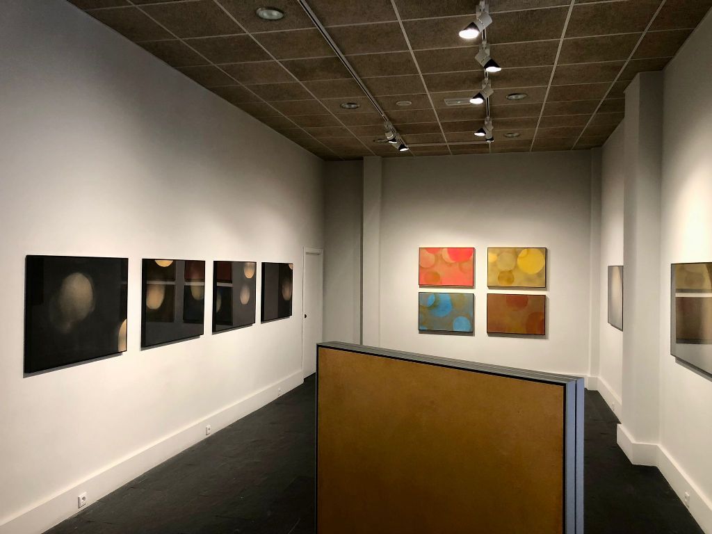 La tercera surgió con el encargo del diseño escenográfico y de iluminación para la gira “Mundos inmóviles derrumbándose” del cantante Nacho Vegas, en la que abandona sus atmósferas planas e introduce motivos circulares. “Son piezas trabajadas a la vez que los diseños a los que se suman algunas realizadas después, empapadas de los directos realizados hasta ahora a los que fui, fotografié y en el estudio intervine con pintura”.