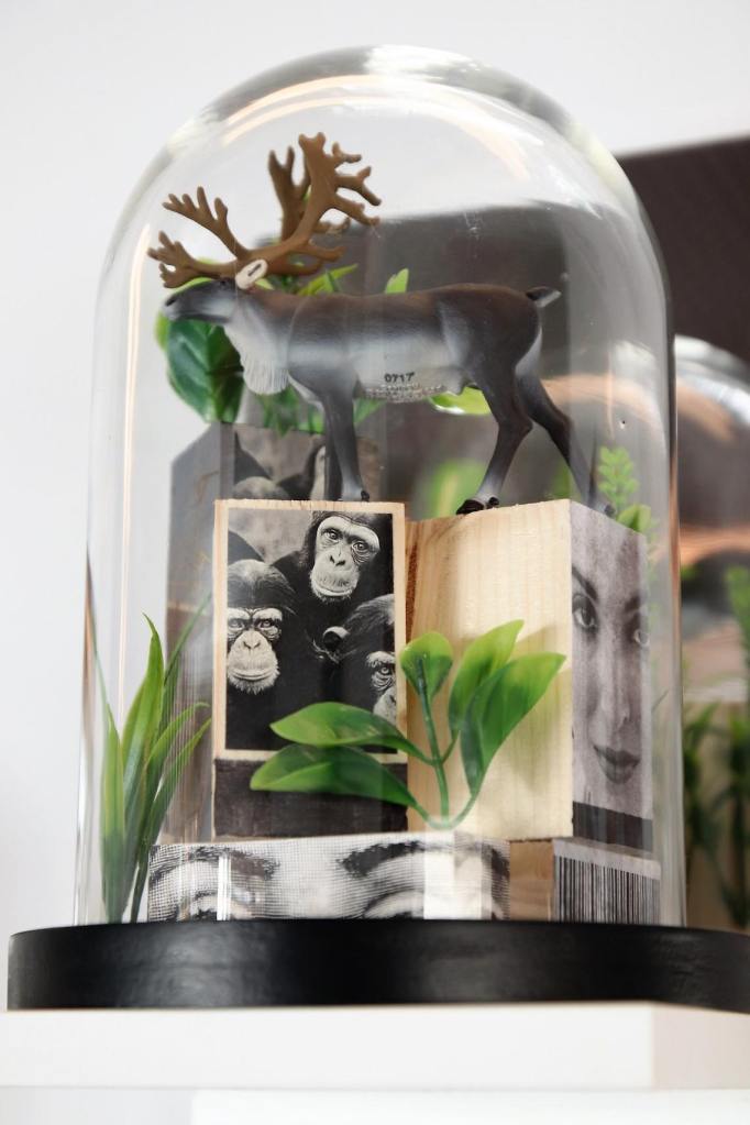 Esta nueva exposición forma parte de las viejas denuncias que había mostrado anteriormente en los collages de las maletas kosovares, con la sangre al cuello, aunque esta vez de manera tridimensional y sirviéndose de elementos que “todos podemos encontrar en los kioscos, en las cosas de la vida cotidiana, en recortes de prensa o en las tiendas de reproducción de animales salvajes o de granja”, señala el pintor.