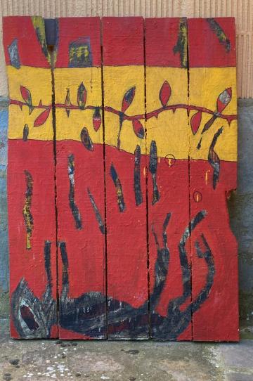Otro de los ejes sobre los que gira la muestra es un conjunto de obras realizadas específicamente para el exterior y que han formado parte de dos proyectos comisariados por Carlos Cuenllas, “Sacas de lúpulo”, y “Naturaleza”. Estas obras se han instalado en el exterior desde el patio de la casa del Maestro hasta la casa y taller de José Antonio Sarmiento y pertenecen a artistas muy diversos, incluso muy jóvenes y nobeles que han querido participar en este homenaje.