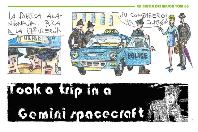 Tira 68 de “En busca del Major Tom”, del dibujante leonés Alberto D. Nogal. Una historieta gráfica de 28 páginas, ejecutada en técnica mixta con lápices de colores y ordenador, y concebida para la colección ArteBowie de Carlos Luxor. Cada semana publicamos una nueva tira, hasta 78 en total, de esta historia medio pop, medio naif, inspirada en el Major Tom, el personaje ficticio creado por David Bowie, en Space Odity, la mítica canción de 1969 en la que narra el viaje iniciático de este astronauta, rumbo a las estrellas.