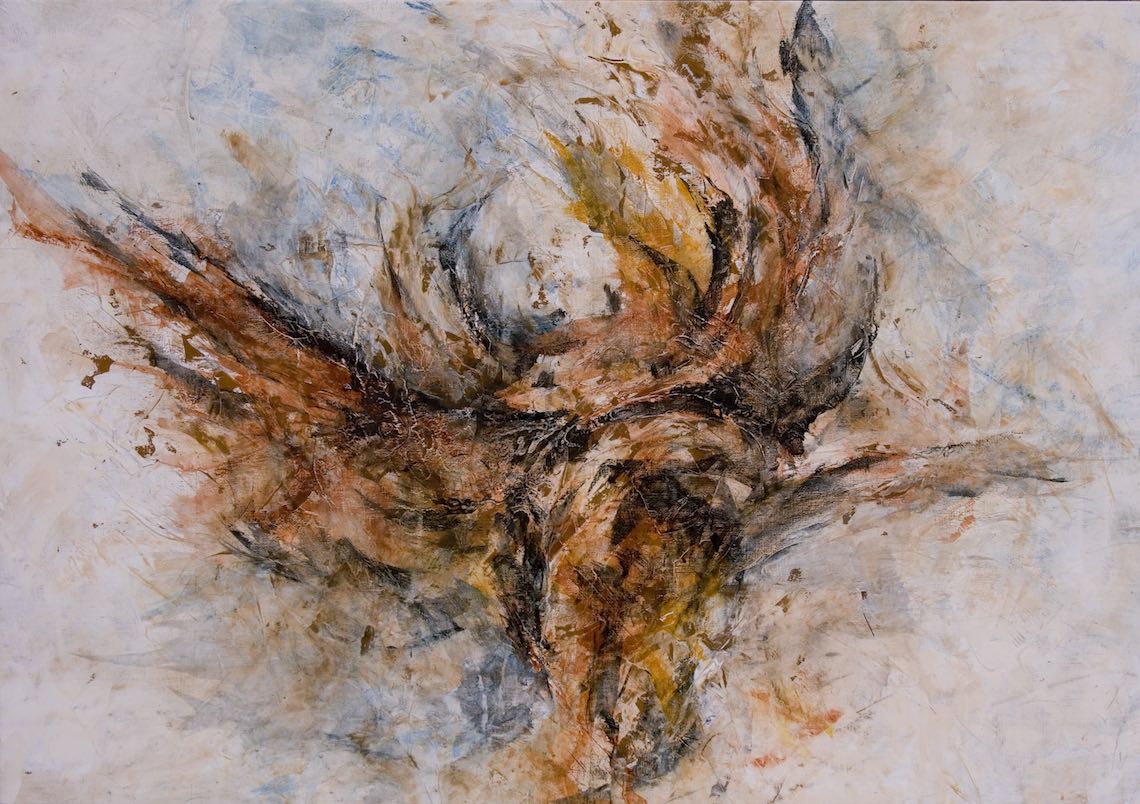 Juan Rafael, que tras su última gran exposición, «Bosques, libretas y otros cuadros» (2019), no ha dejado de pintar y experimentar, inició hace casi tres años una nueva línea de trabajo, de la que son buena muestra estas catorce obras que ahora presenta en el claustro abierto capuchinos. Sin dejar de profundizar en la abstracción lírica, el artista leonés ha retornado de alguna manera al gesto expresionista de su primera época, pero con mayor libertad si cabe, logrando obras impactantes llenas de texturas, contrastes y sugerencias narrativas.