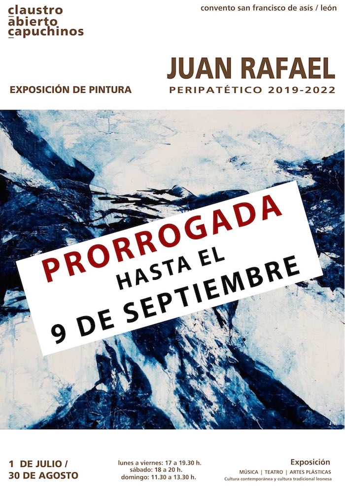 claustro abierto capuchinos, dentro de su programa dedicado a las artes plásticas, acoge este verano una exposición de pintura de Juan Rafael (León, 1968), «Peripatético 2019-2022», en la que el artista leonés exhibe una pequeña selección del trabajo realizado en los tres últimos años.