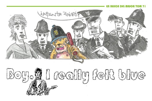 Sobre la elección del Major Tom el dibujante leonés asegura que le abre muchas posibilidades narrativas, más aún al tratarse de una creación del desparecido David Bowie, un personaje polifacético y poliédrico, posiblemente uno de los más interesantes de la cultura popular reciente, tanto en su proyección artística como en su vida personal. En esta historieta, Nogal relata una ficción centrada en un día de la vida de un David Bowie adolescente, todavía David Jones, que estudia en el instituto, dónde se explica la causa de la anasicoria que confirió a su aspecto una variable aún más enigmática. En el guión se insertan fragmentos de letras de sus canciones como Space Oddity, Ashes to Ashes, I Took a Trip on a Gemini Spacecraft . Canciones surrealistas y dalinianas, como las definió la crítica musical del momento.