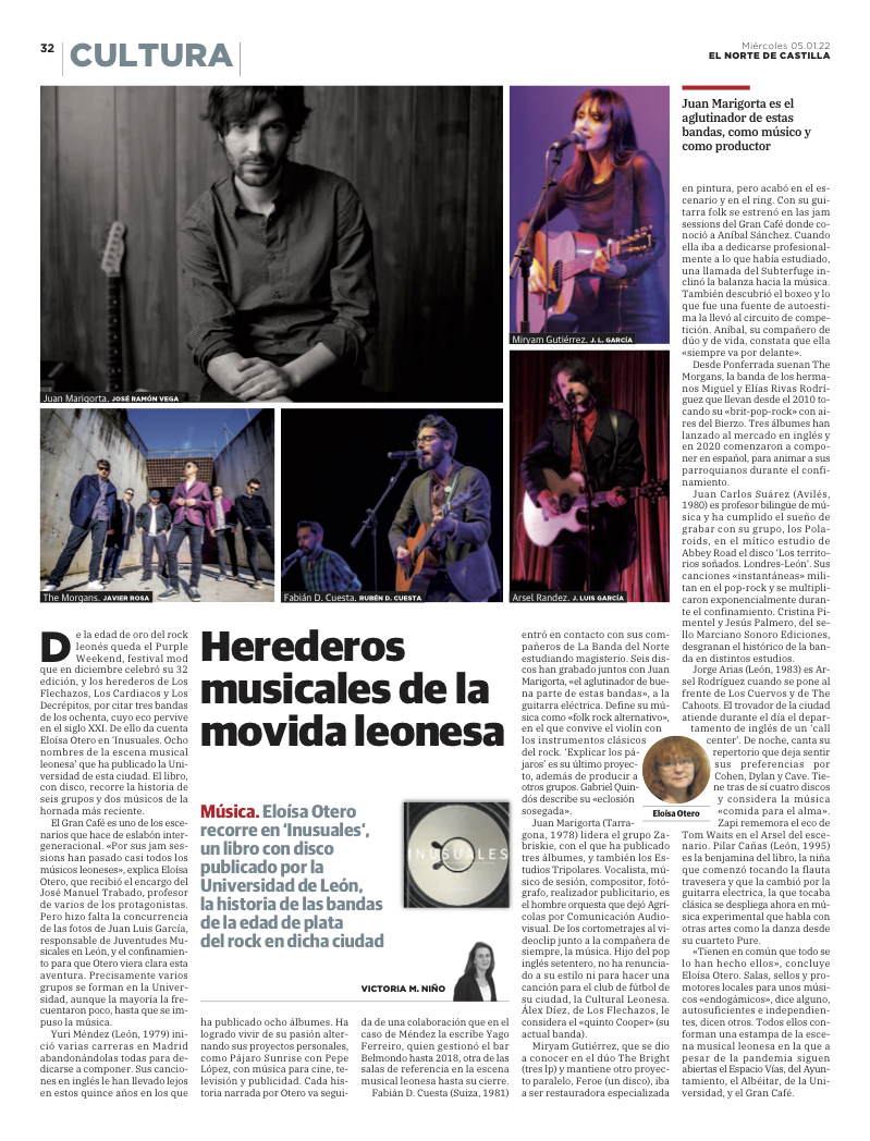 Publicado por la Universidad de León, el libro-disco recopila la historia y la trayectoria de una espectacular generación de músicos nacida en torno a 1980 y protagonizada por Yuri Méndez (Pajaro Sunrise), Fabián (y La Banda del Norte), Juan Marigorta (Zabriskie), Miryam Gutiérrez (Feroe), Jorge Arias (Arsel Randez), The Morgans, Pilar Cañas Martínez (Pure) y Juan Carlos Suárez (Polaroids).