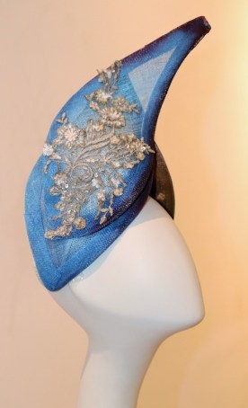 Este sombrero inspirado en un patrón de los años 30, “está rematado con unos cristales de Swarovski que tienen mucho brillo y hacen brillar, a su vez, la piel y la cara”.