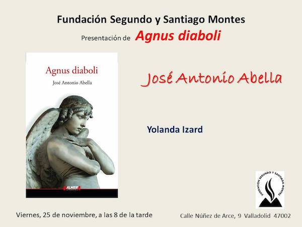 La Fundación Segundo y Santiago Montes (Núñez de Arce, 9), en Valladolid, acoge este viernes 25 de noviembre, a las ocho de la tarde, la presentación de la novela «Agnus diaboli» (Ediciones Valnera), del médico, escultor y novelista burgalés afincado en Segovia José Antonio Abella, quien estará acompañado por la escritora y crítica literaria Yolanda Izard.