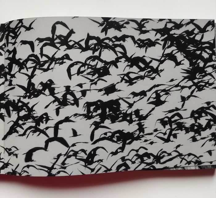 Hace menos de tres meses dábamos cuenta de las últimas aventuras creativas y colaborativas de Felipe Zapico Alonso (anartista, poeta, fotógrafo, actor, profesor, viajero, cantante, amigo…). Y hace solo unos días, el amigo pasó por León y me trajo un regalo, un ejemplar de Bandada, su último libro impreso sobre gris y con tapas de cartón negro, editado por Fundación CB (edición limitada a 50 ejemplares no venales), con diseño y primorosa maquetación a cargo de Sol Kabañas.