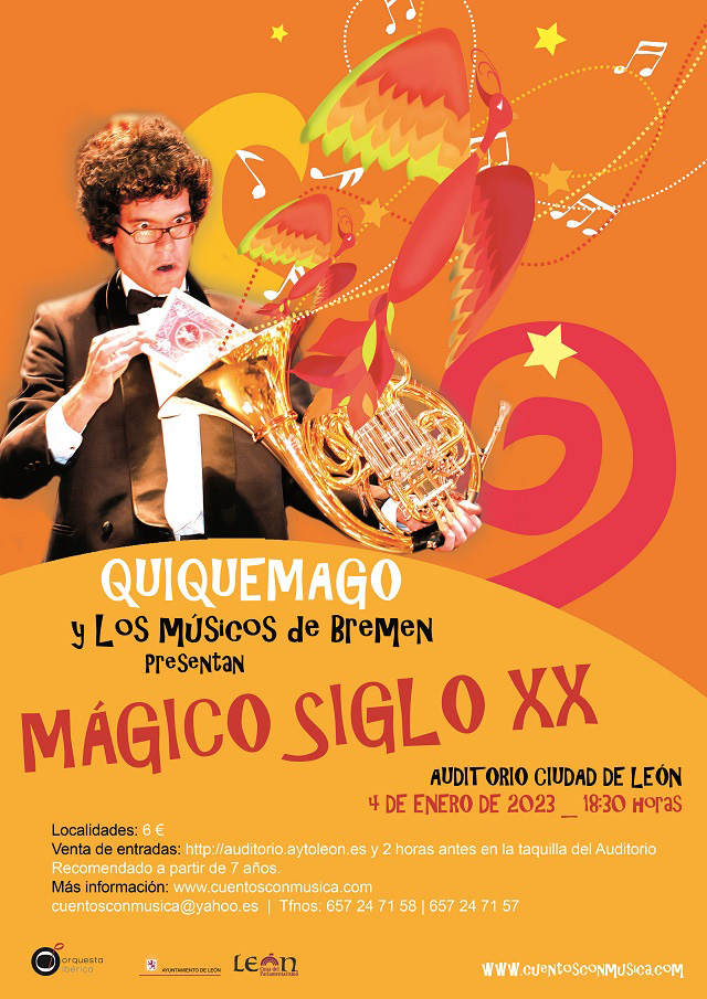 Quiquemago y los Músicos de Bremen desembarcan este miércoles en el Auditorio de León con “Mágico siglo XX”, un espectáculo divertido e intrépido en el que la magia y el humor sirven como hilo conductor para que el público pueda descubrir la música vanguardista del neoclasicismo, el primitivismo, la música aleatoria y dodecafónica, el minimalismo, la música electroacústica y el futurismo.