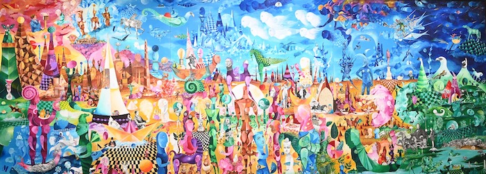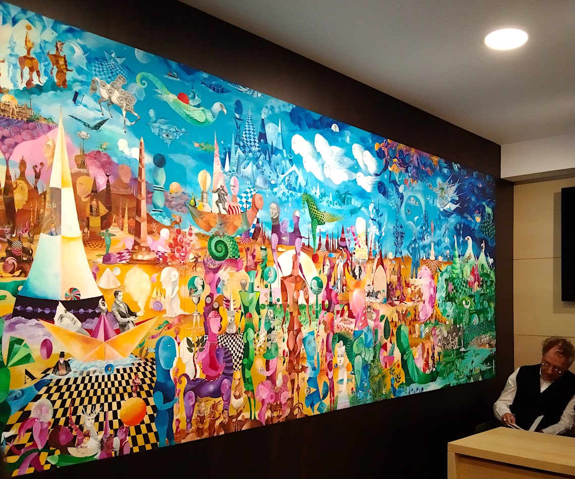 Joaquín Otero contó cómo Mestre, que fue como un hijo a la vez que amigo de Pereira —»ambos se admiraban, eran cómplices, hablaban todos los días por teléfono…»—, se ha inspirado en toda la obra del autor de Las ciudades de Poniente, El cancionero de Sagres o Cuentos para lectores cómplices para realizar este mural, en el que sobrevuelan y conviven de manera fascinante todos los mundos y sueños pereiranos, siempre llenos de poesía, ternura, humor, color y sugerencias. Un año tardó Mestre en realizar esta hermosa obra, que ha sido enmarcada en una pared forrada de madera a sugerencia de Gamoneda, quien el día que la vio por primera vez dijo: «Una obra de arte como esta no puede estar al servicio de una pared, tiene que ser al revés, que la pared esté al servicio de la obra». Dicho y hecho.
