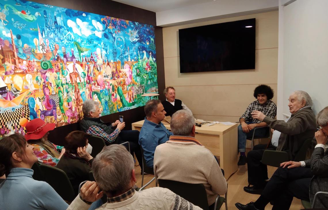Asistieron a la presentación Juan Carlos Mestre, Mario Obrero y el poeta amigo Antonio Gamoneda, con Joaquín Otero Pereira, presidente de la Fundación, y David Santamarta, ambos sobrinos de Pereira, como anfitriones.