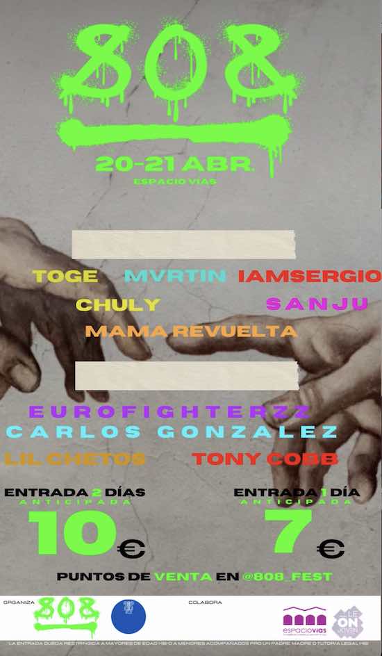 El 808 FEST es un festival de música urbana que cuenta también con exhibiciones de baile y skate. Se celebrará en León, los días 20 y 21 de abril de 2023, en Espacio Vías. El precio de las entradas es 10 € los dos días, y 7 € solo un día. Está organizado por la Asociación Universitaria Apolo.