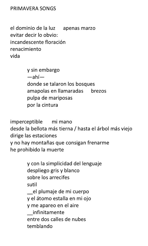 Publicamos cuatro poemas de la poeta madrileña Marga Mayordomo, seleccionados por ella entre sus distintos cuadernos y libros: Dedos de Martini-Dry (Premio Joaquín Benito de Lucas, 2013), Pájaros tattoo (Cuadernos del Laberinto, 2018) y Yukón / versos mestizos (Mahalta Ediciones, 2022).