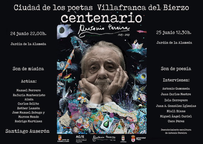 Continuan los actos de celebración del centenario del nacimiento del escritor Antonio Pereira, y esta vez será su localidad natal, Villafranca del Bierzo, la que acogerá, los días 24 y 25 de junio, una doble Fiesta de la Música y la Poesía en la que participarán distintos músicos y poetas.