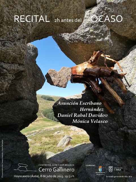 El Centro de Arte y Naturaleza Cerro Gallinero (Hoyocasero, Ávila), celebra un año más su encuentro con la poesía y la música con un nueva cita del “RECITAL 2 h antes del OCASO”. Será el próximo 8 de julio a las 19:52 horas. En esta ocasión participan los poetas Asunción Escribano, Daniel Rabal Davidov y Mónica Velasco. A continuación, sobre las 22:00 horas dará comienzo el concierto del dúo de pop experimental Northwest, formado por Ignacio Simón y Mariuca García-Lomas.