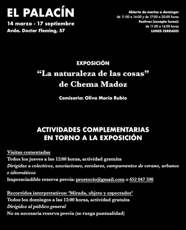 Horario de visita de la exposición: martes a domingo de 11.00 a 14.00 horas y de 17.00 a 20.00 horas. Festivos de 11.00 a 14.00 horas. Lunes cerrado.