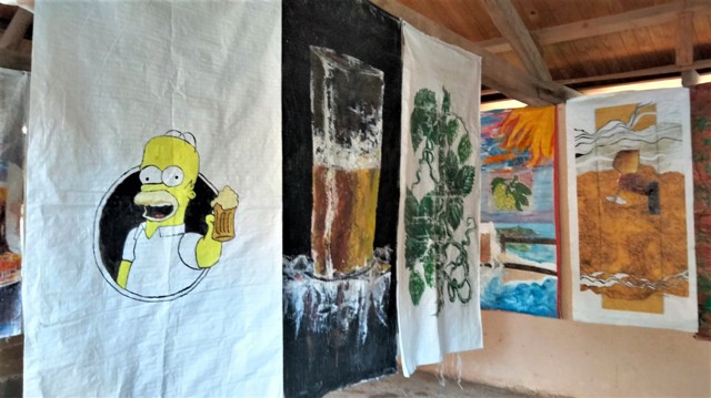 Los artistas han utilizado los sacos de rafia para dar una nueva vida a este material y a la vez proponer otra lectura sobre el lúpulo y la cerveza. Han empleado técnicas y materiales diversos: desde óleos, esmaltes y acrílicos hasta la impresión digital, el arte textil o el collage.