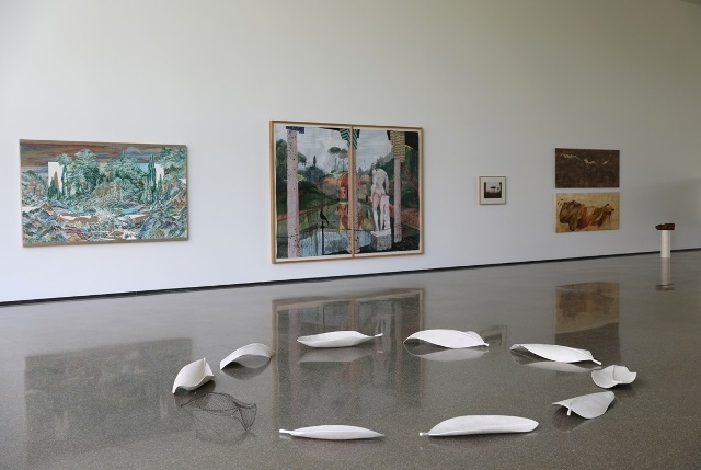 El segundo bloque, “Paisaje, historicismo y canon occidental”, las obras de diferentes artistas nos aproximan con una perspectiva crítica a las primeras construcciones historicistas de géneros pictóricos como la “pintura de jardín” conservada todavía en los frescos de las villas romanas; así como a la evolución de esos primeros códigos de representación en los tratados de pintura renacentistas donde quedaba fijada una comprensión unitaria del espacio en la relación ideal del sujeto con el mundo exterior a través del concepto del “cuadro-ventana”. La alusión de otras obras al Grand Tour, el viaje a Italia que se hizo famoso entre los siglos XVII y XIX como parte de la educación humanista de artistas y escritores, hace referencia a la importancia del canon occidental y la impronta de Roma e Italia como origen de una tradición paisajística que será revisada por el arte moderno.