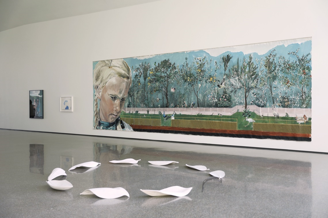 “Epílogo: paisaje distópico” cierra el recorrido de la exposición con una intervención pictóricoinstalativa de Rosalía Banet que metaforiza el tiempo de crisis irreversible que vive este planeta, donde se agotan y destruyen los recursos naturales debido a la explotación intensiva de los ecosistemas y al consumo indiscriminado del capitalismo global. Un grito de auxilio de cuerpos y árboles devorados por la catástrofe ecológica
