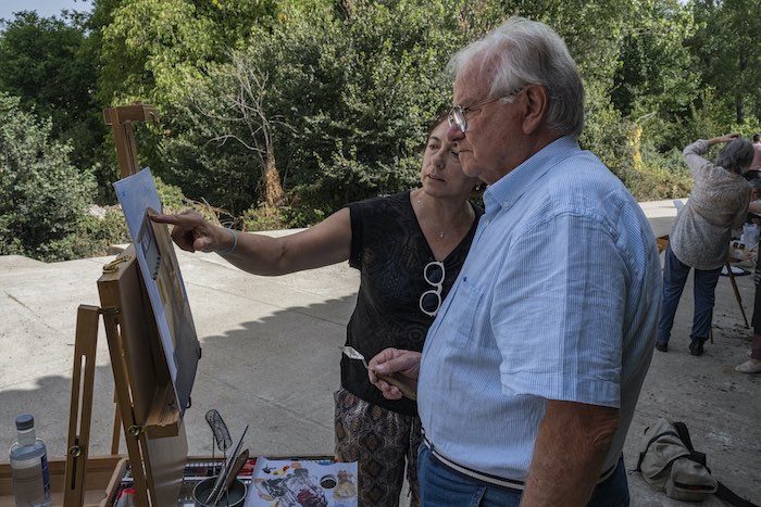 En esta “comuna de pintores”, como la define Beatriz Sánchez Valdelvira, una de las asistentes al taller, “la vida transcurre en armonía, sabedores todos que estas jornadas son un privilegio, un paréntesis que quiebra las rutinas individuales. Se habla mucho, se come (también mucho) y cada cual aporta y comenta su jornada: la luz tan bonita, qué pesadas las moscas, el blanco que se me ha olvidado, el pincel que se ha perdido y las experiencias e historias propias que vengan al caso”.