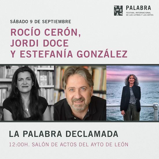 - 12:00h. “La palabra declamada”. Lectura de poemas con Rocío Cerón, Jordi Doce y Estefanía González. Lugar: Salón de actos del Ayuntamiento de León. Calle Alfonso V.