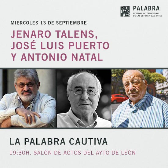 - 19:30h. “La palabra cautiva”. Homenaje a Eugenio de Nora. Con Jenaro Talens, José Luis Puerto y Antonio Natal. Lugar: Salón de actos del Ayuntamiento de León. Calle Alfonso V.