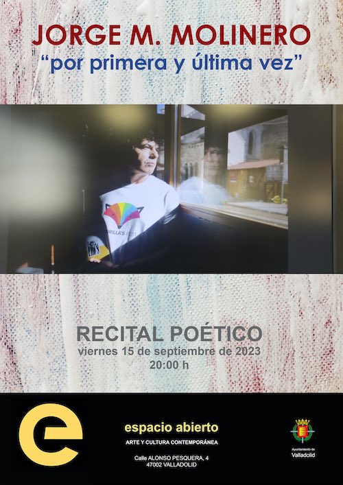 «Por primera y última vez» es el título del recital que el poeta Jorge M. Molinero ofrece este viernes 15 de septiembre en «espacio abierto» (Calle Alonso Pesquera 4, en Valladolid). Será a las 20 horas y la entrada en libre.
