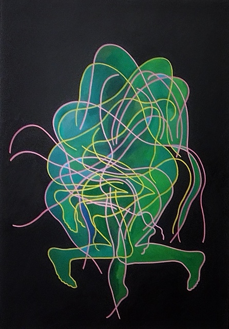 Por medio de la línea y el color, Esteban Tranche transita de la figuración esquemática hasta la abstracción orgánica. “Parte de una línea que surge de una deconstrucción de las líneas básicas que definen la silueta de la figura humana y una posterior reconstrucción arbitraria de estos elementos básicos que sirven para generar nuevas realidades formales y plásticas”, asegura el comisario de la muestra. Así surgen una serie de composiciones que en sus primeras obras evocan más o menos la figura humana. En estas pinturas, las tintas planas, delimitadas por líneas, construyen secciones del cuerpo humano, llegando a alcanzar el territorio de la abstracción orgánica.