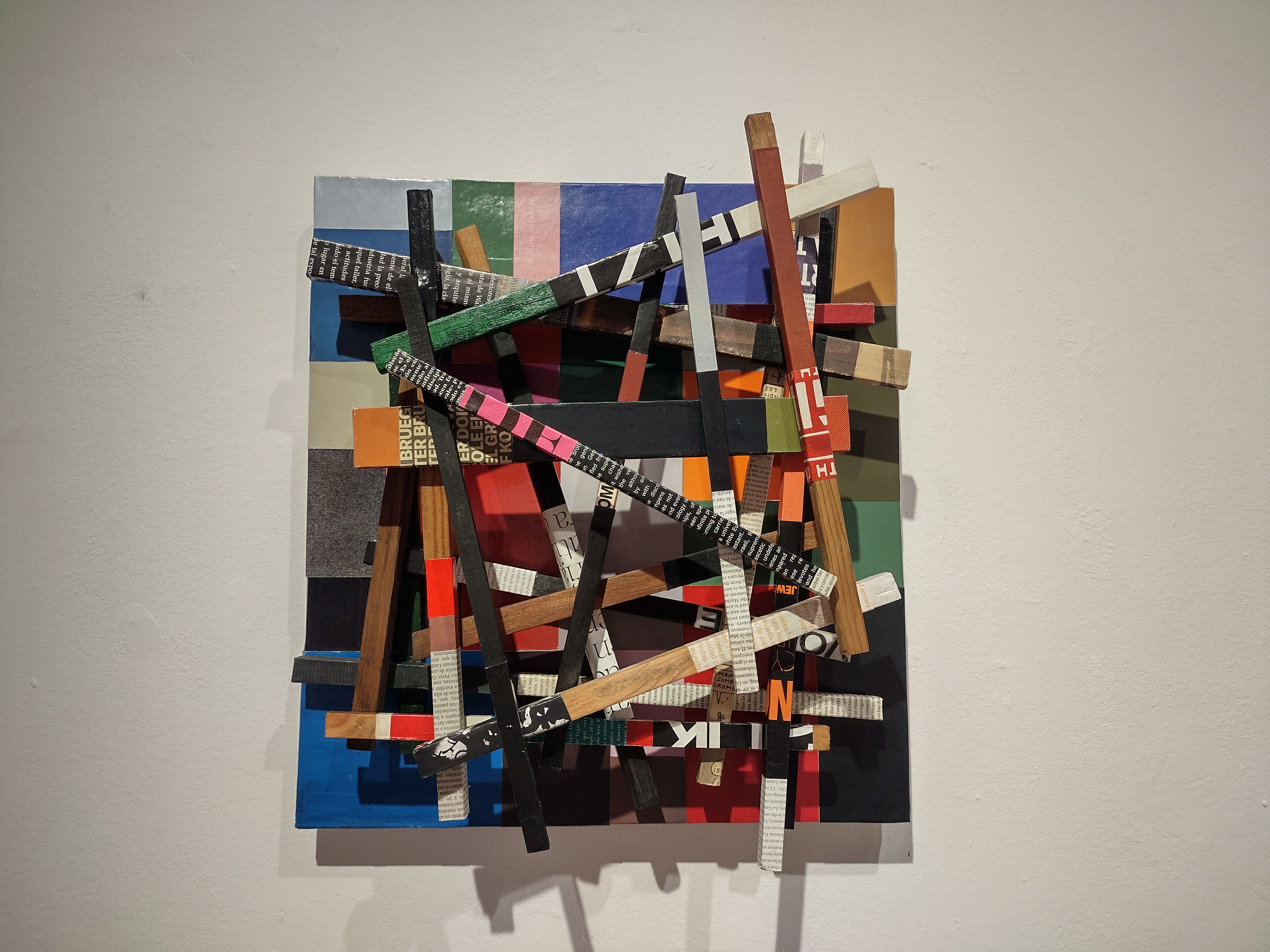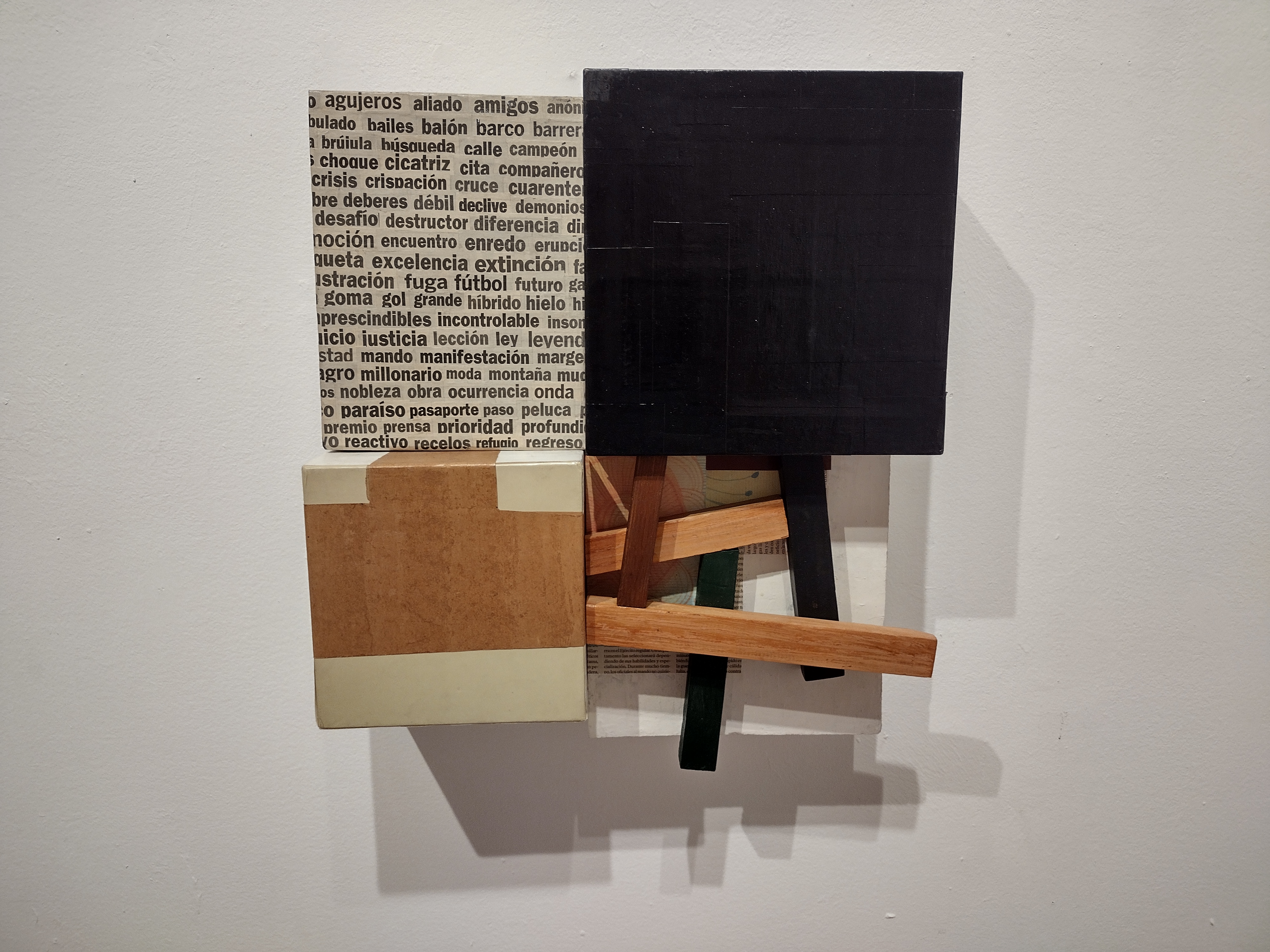 La obra de Esteban Tranche (Armunia, 1944) se basa en un proceso de introspección y sus primeros pasos se podrían inscribir en el territorio de la neofiguración con una cierta carga expresiva y tensa, que irá evolucionando hacia una simplificación formal. Su trabajo se centra en la pintura, aunque también ha explorado la escultura y el muralismo. Roberto Díez (León, 1955), asentado en Madrid desde hace décadas, dio sus primeros pasos a finales de los setenta en el expresionismo figurativo; posteriormente evolucionó hacía un revisionismo abstracto, realizando algunas incursiones en el ámbito de la escultura. Su obra ha derivado en los últimos años en el desarrollo de un sistema de ensamblaje que potencia la utilización del collage, el relieve, la espacialidad y el volumen, alcanzando sus piezas el territorio de la instalación. Tal como el mismo explica, comparte poética “con cubismos, constructivismos y póveras”, y encuentra cierta similitud con la actitud del bricoleur de Lévi-Strauss; “pretendo elaborar objetos como respuestas concretas a la necesidad que provoca la reflexión sobre una realidad incierta, heterogénea y fragmentaria, como la que atraviesa un mundo urbano, complejo y contemporáneo”.