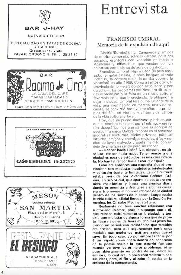 2A 1982 Umbral 3 copia 27 de octubre de 2023 Return to: «Francisco Umbral. Memoria de la expulsión de aquí», una entrevista de Carlos Suárez (1982)Máxima resolución (600 × 911) Image navigation Previous Image Siguiente imagen