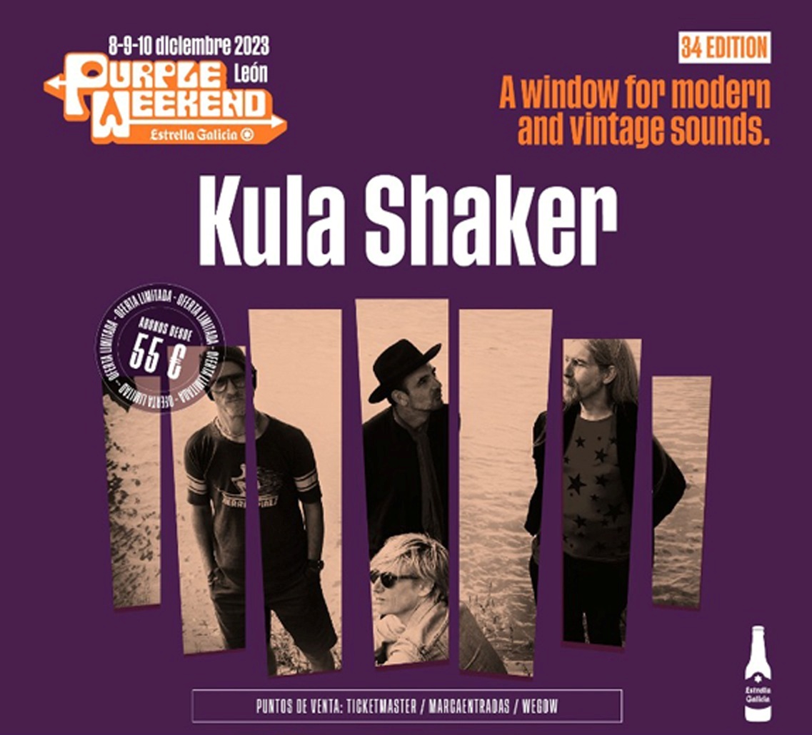 El Purple Weekend se prepara un año más para regresar a la capital leonesa los días 8, 9 y 10 de diciembre. La mítica banda de rock psicodélico Kula Shaker lidera el cartel de esta XXXIIII edición, al que se suman The Shadracks, Logan’s Close y The Liquorice Experiment. Son sólo el prólogo de un programa de lujo. Ya se puede conseguir el abono con una oferta de lanzamiento de 55 euros.