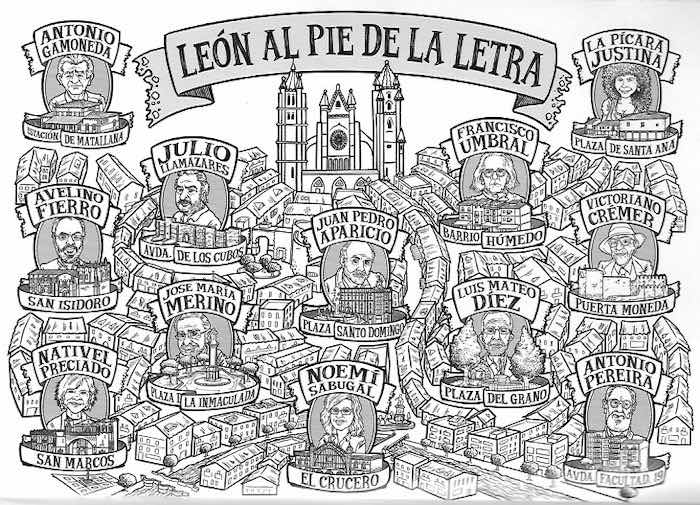 Trece son los nombres propios que ocupan el índice y protagonizan las doce rutas literarias de este libro, cuya idea surge de la necesidad de su autor «por hacer que la literatura leonesa no quede en el olvido y pase de generación en generación». Dos de estos autores cuyos nombres no necesitan mucha presentación, cabe subrayarlo, han obtenido el Premio Cervantes: Antonio Gamoneda en 2006 y Luis Mateo Díez hace tan solo unos días. Y tan solo uno de los trece, «la pícara Justina», a diferencia de los doce escritores restantes, es un personaje literario (y protagonista de la novela picaresca española ‘Libro de entretenimiento de la Pícara Justina’, cuya primera edición conocida se remonta a 1605 y cuyo autor podría ser Francisco López de Úbeda, conocido novelista de esa época).