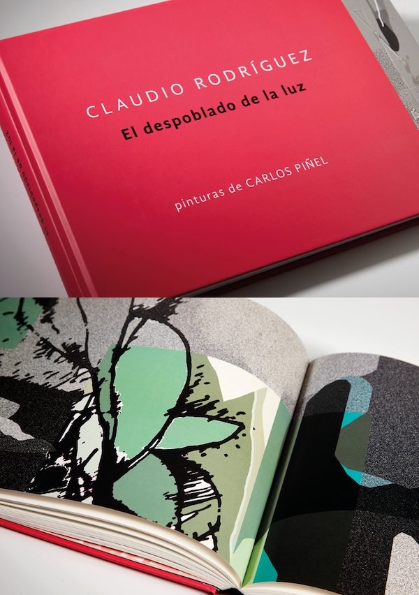Del trabajo del pintor para aquella exposición surge, precisamente, El despoblado de la luz, antología de veinticuatro poemas de Claudio Rodríguez editada por OZELO Ediciones de Arte en noviembre de 2023. Se trata de una obra literaria y artística muy especial, imaginada y realizada por Carlos Piñel, quien trabajó con dedicación sobre distintos poemas del autor hasta sumar más de un centenar de pinturas, incluyendo bocetos, y alguna escultura. Con prefacio de Ángel L. Prieto de Paula, el libro, de 200 páginas, encuadernado en tapa dura y en gran formato (31 x 20,5cm.), reúne una selección de veintidós ilustraciones que pretenden comunicarse y dialogar con otros tantos poemas de Claudio Rodríguez procedentes de sus cinco obras canónicas y de la inconclusa Aventura.