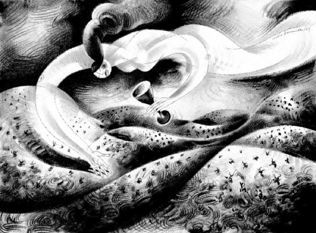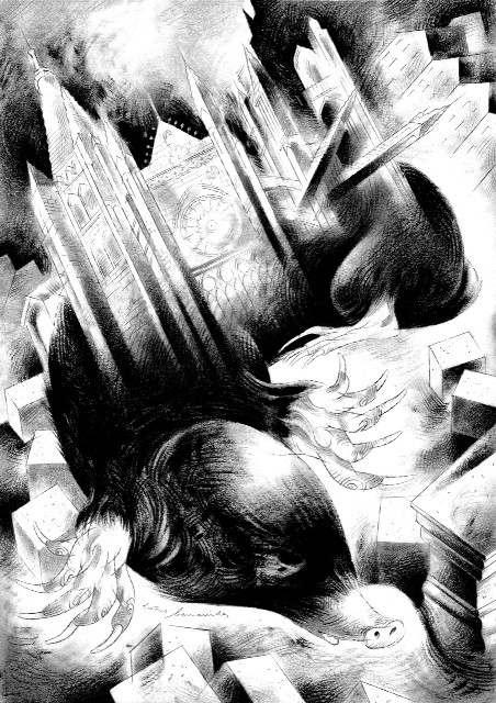 Es un recorrido previo a la exposición que inaugurará el próximo 12 de diciembre en la galería Espacio_E , y del que ahora sólo se exhiben cuatro ilustraciones en blanco y negro de las dieciocho que componen “León de leyenda”. “El galerista Pablo Estilo quería hacer una exposición mía con obra nueva que tuviera relación con León y elegí este tema porque es un terreno muy propicio para fantasear e interpretar. Las leyendas leonesas son un reflejo de las europeas, y en estas ilustraciones se pueden encontrar muchas coincidencias”.