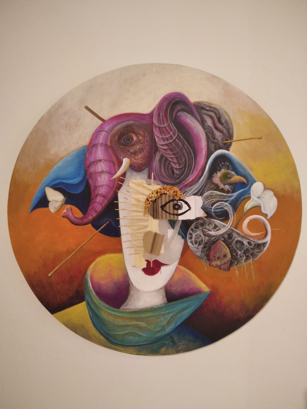 – Desde el gusto, tengo que decir que Picasso no es uno de mis artistas favoritos, por otra parte hay que reconocer la cantidad de aportaciones que hizo a la pintura, y el collage es para mí el principal. Esta técnica me ha acompañado en toda mi trayectoria, desde los collages más convencionales, hasta los verticales, dotando al plano pictórico de la posibilidad de generar sombras. Desde ese gusto mío de forzar los límites, necesitaba distorsionar la percepción del rostro, y el collage se convirtió en el mejor aliado, en el que dos lenguajes opuestos conviven y se hacen imprescindibles para poder leer la obra.