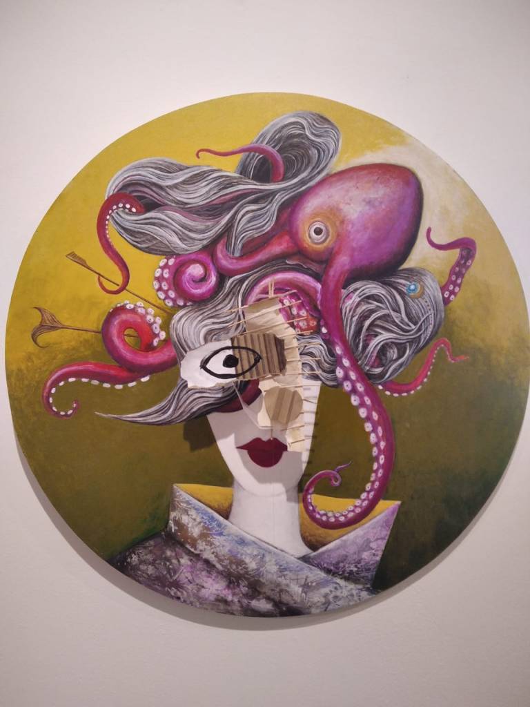– La primera vez que estuve en el estudio de un artista, fue a los cinco años en el de Monseñor, cuando lo tenía en la calle San Pedro, y recuerdo que me impresionó ver un Polifemo que estaba pintando…siempre quise hacer algo con ese recuerdo. Por otra parte, uno de los retos en esta serie era que los tocados fueran muy disparatados y divertidos, en esas madejas de pelo pueden vivir todo tipo de pájaros, insectos y plantas. Si hay un sitio en el que me encuentro pleno es en la naturaleza, y en ella está todo lo que necesitamos para crear y ser felices.