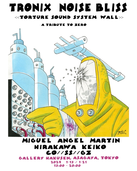 Y de nuevo con el apoyo de CopASS GrinderZ, presenta en la galería privada Hakusen, junto a las fotografías de la artista Keiko Hirakawa, una muestra centrada en la vanguardia del ruido y la música industrial que lleva por título “Torture Sound System Wall”. Formada por veintitrés ilustraciones sobre los pioneros de este género, entre los que se encuentran la banda inglesa de noise “Whitehouse”, fundada por William Bennett y la formación australiana “SPK”, pretende ser un homenaje a Zero Enomoto, guitarrista y líder de esta banda de culto. “Zero falleció hace dos años y esta exposición es un homenaje a su figura”, explica.