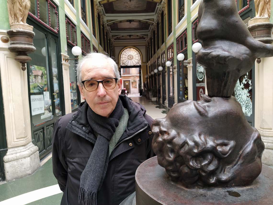 Pues mira, hice un vídeo sobre la fachada del Museo Nacional de Escultura, un espacio lleno de enigmas y hermosas historias. En ese proyecto, encontré al músico australiano John Griffiths que estaba cautivado por la música del siglo XVI en España y vino al Archivo de Simancas a encontrar partituras, y con música del vihuelista Esteban Daza montamos un recorrido por esta especie de retablo tallado en piedra de la fachada con todo lujo de detalles. Otro de los trabajos audiovisuales estaba centrado en los obreros de una construcción cerca de mi casa que tenían un ritmo especial y una manera curiosa de afrontar su profesión, vista al menos desde fuera. Aquí le puse música de ópera. El vídeo más conocido lo grabé en la localidad de Urueña a partir de un poema de Miguel Casado. Era un pueblo fascinante que en los años 80 estaba completamente abandonado. Esta creación la presentamos en un espectáculo que llamamos Costa y lámpara. Pero, quizás, el vídeo más literario fue el que tenía que ver con un cuento mío titulado Lengua de gato y que lo grabamos con un amigo actor en un semisótano de un café. Dentro de las precariedades técnicas, pude usar hasta una cámara de grabación U-matic, un cacharro enorme, y aunque era mejor que los primeros que utilicé, siempre te quedabas con la sensación de que el resultado de estos trabajos no tenía la suficiente calidad. Por ese motivo, dejé esta tarea y me centré más en escribir, que tiene la gran ventaja de que no necesitas nada, con papel y lápiz es suficiente.