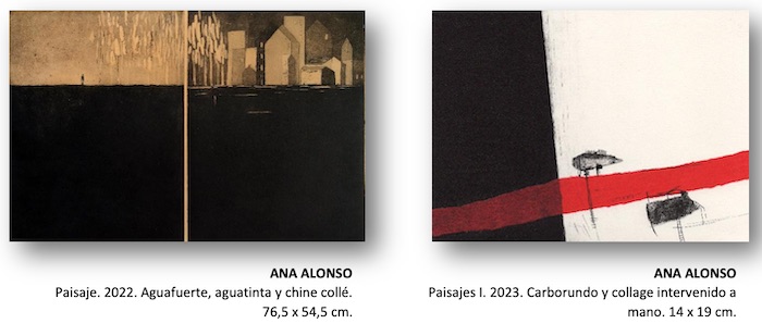Ana Alonso, tiene un bagaje de trabajo como ilustradora en el que utiliza técnicas como el dibujo, el grabado y el collage, pero investiga también para producir una obra más personal como obras únicas y también orientada hacia el libro de artista. Aborda con sus imágenes mundos fantásticos, como de sueño, escenarios nocturnos en los que los personajes destilan en unos casos sentimiento de soledad y en otros se dan al juego como forma de relacionarse.